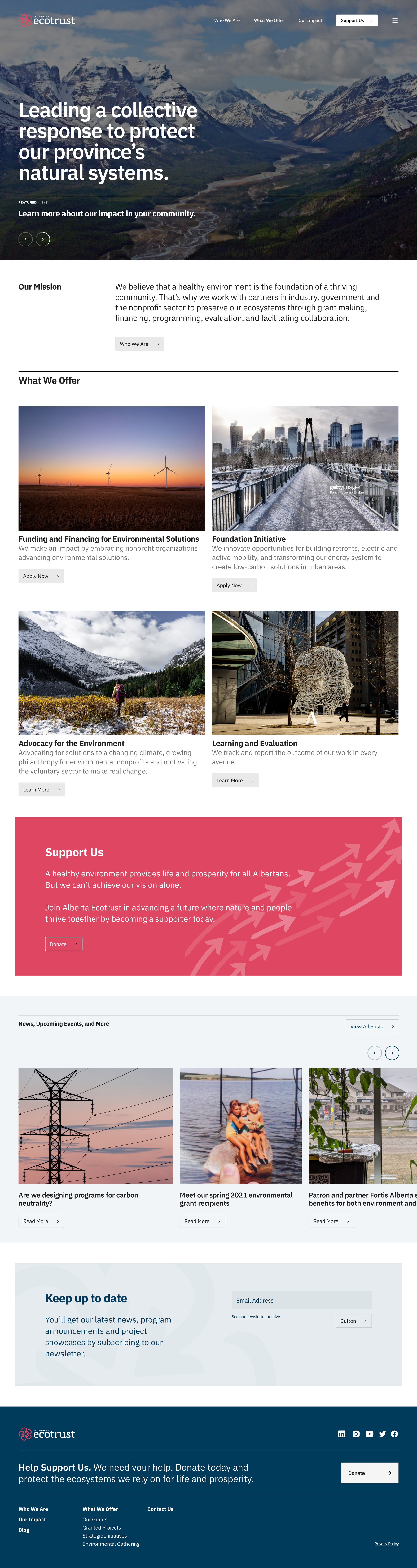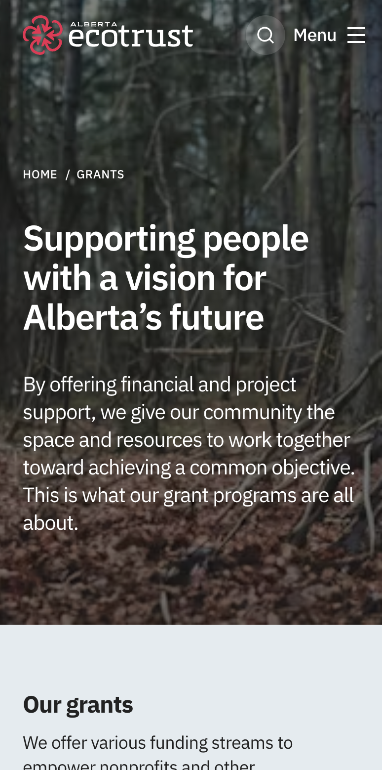 In April 2021, we embarked on a comprehensive website redesign project to transform Alberta Ecotrust Foundation's digital presence. Our approach centred on creating an intuitive platform that would effectively organize and communicate their mandate, projects, and programs while delivering an elevated, professional experience.