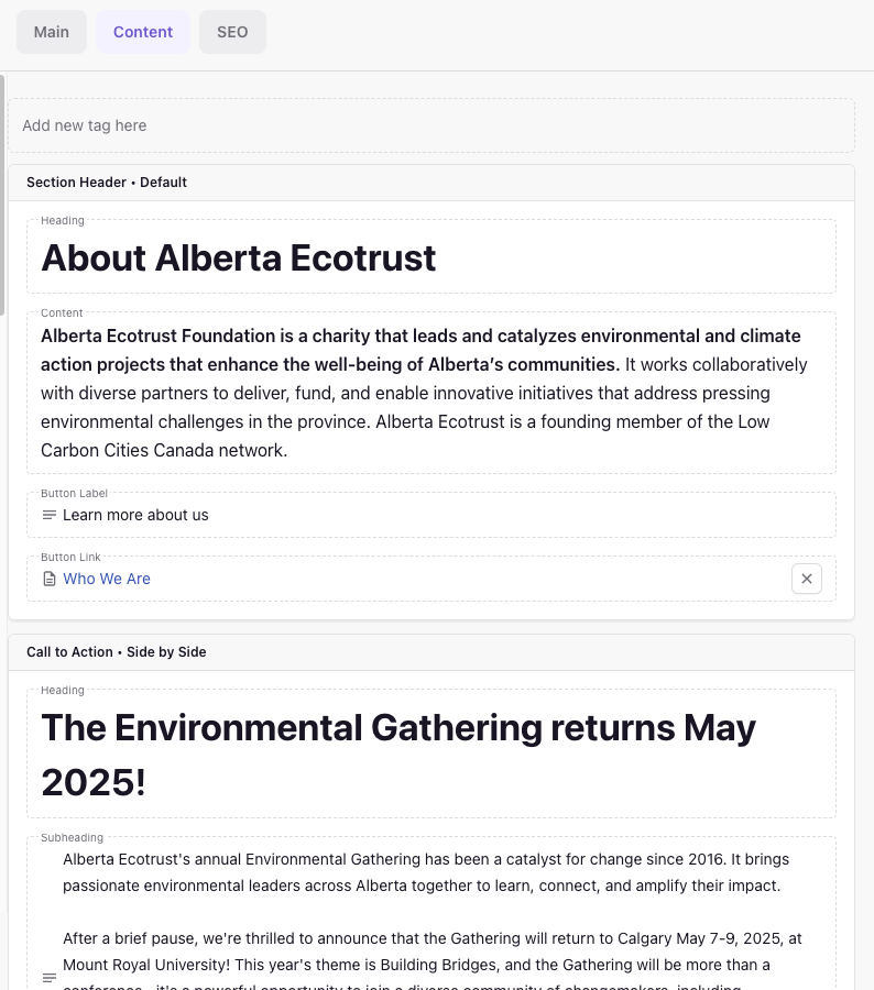 The thoughtful organization has led to improved user engagement and clearer communication of Alberta Ecotrust's mission and impact. The streamlined content architecture reinforces their position as a leader in environmental and climate action while making complex information accessible to all stakeholders.