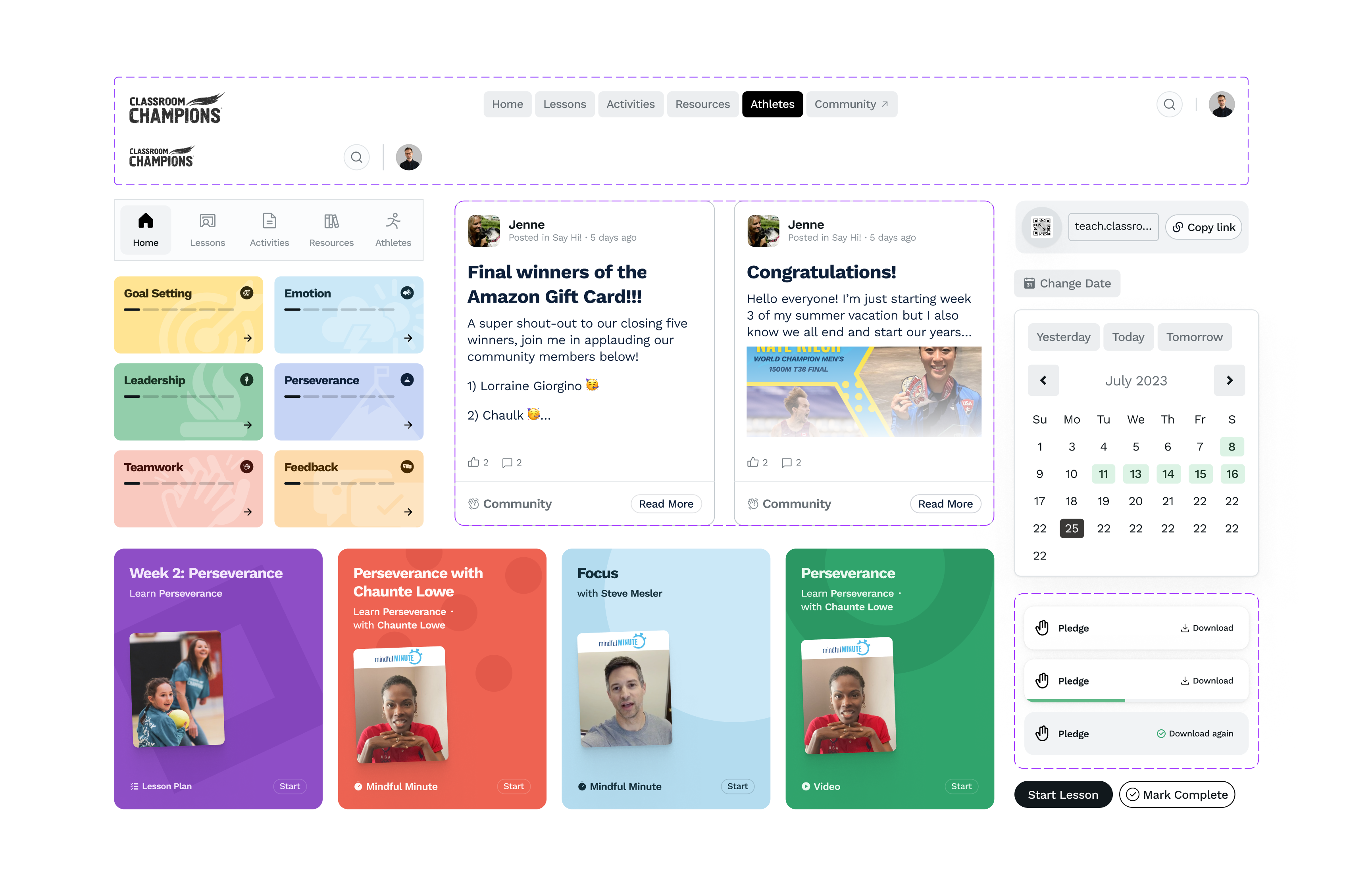 Classroom Champions is an international nonprofit that has connected over 50,000 underserved students annually with Olympic, Paralympic, NCAA, and professional athletes as mentors since 2009. Through their innovative programs, students develop essential social, emotional, and academic skills.