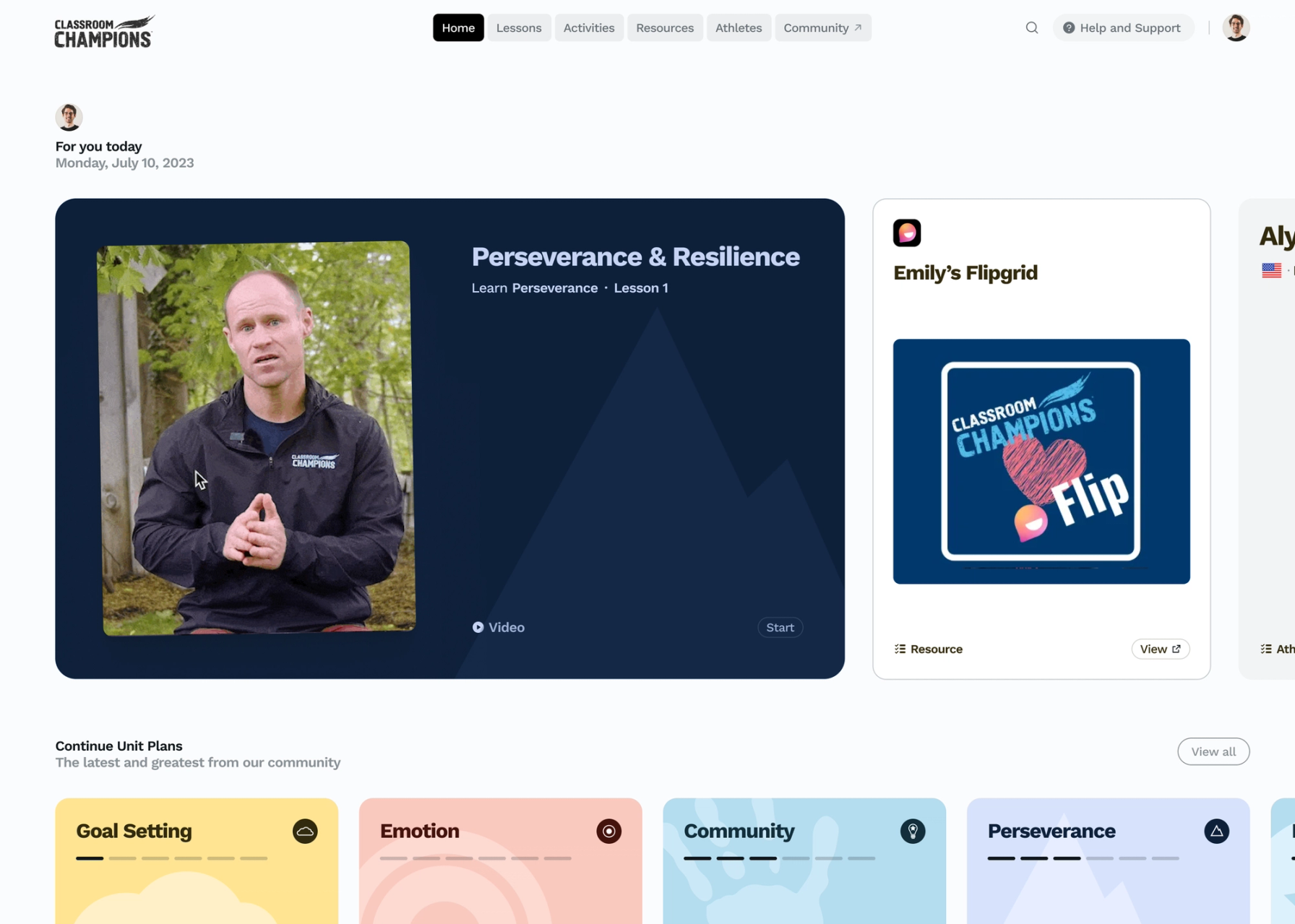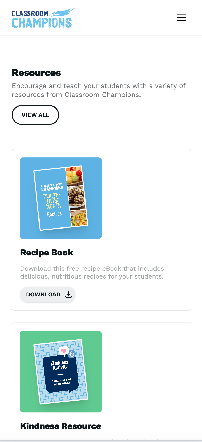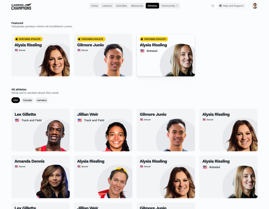The old platform functioned mainly as a static content repository. We wanted the redesigned dashboard to feel like a place teachers would return to, not just a filing cabinet they opened when they needed something. Community update sections and auto-updating post feeds sit up front, keeping educators connected to what's happening across the program. A dedicated resource feed gives teachers direct access to printable classroom materials, organized so the Classroom Champions team can maintain them independently and teachers can find them without wading through lesson content.