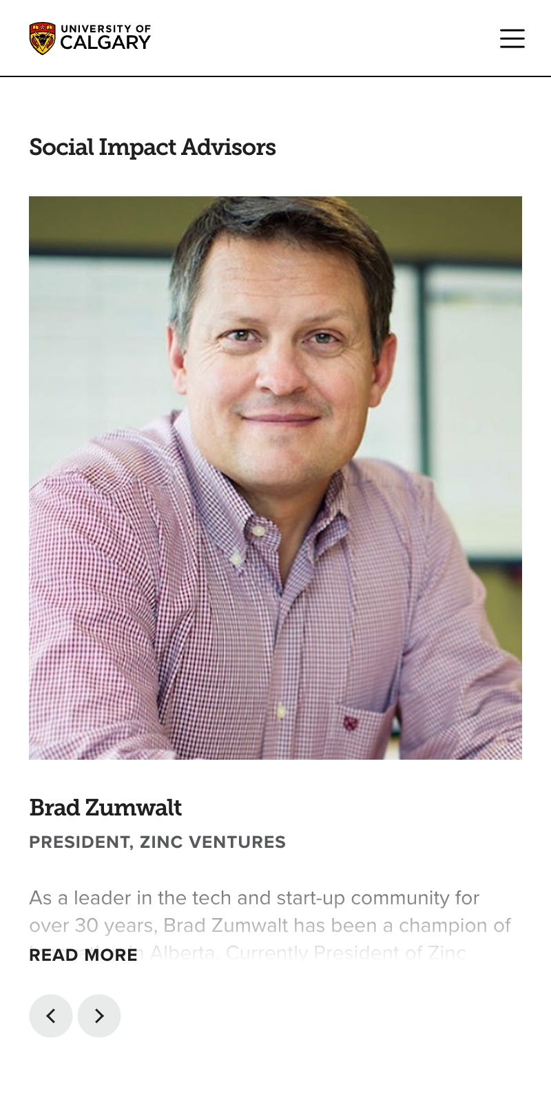 Prismic was selected as the CMS, giving the University of Calgary's team direct control over content as the portfolio grows and the story evolves without requiring development work each time a change needs to be made.