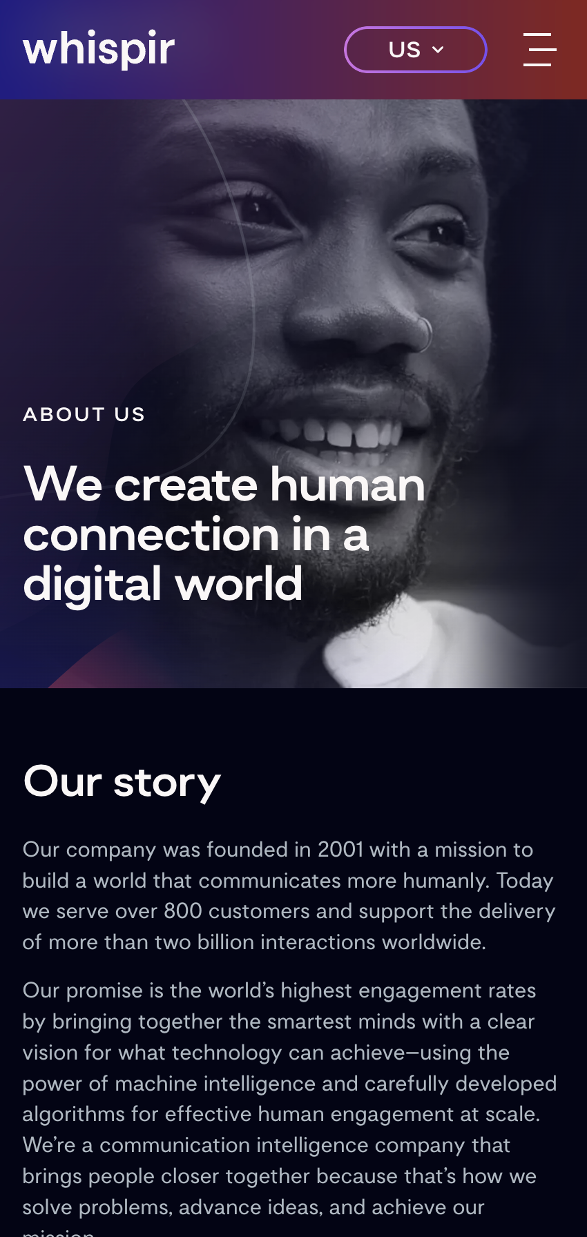 Whispir was founded in 2001 with a mission to build a world that communicates more humanly. Today they serve over 800 customers and support the delivery of more than two billion interactions worldwide.